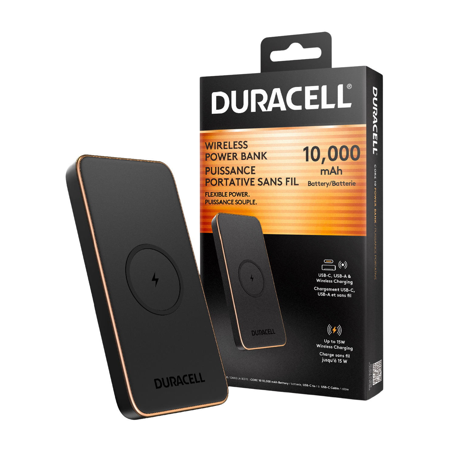 Designed to go where you go, this portable charger includes three charging methods including USB-C, USB-A and 15W Wireless Charging for cable-free charging. The Duracell Core 10 Power Bank is powerful enough to keep you going, TSA carry-on compliant, and designed with an elegant texture.